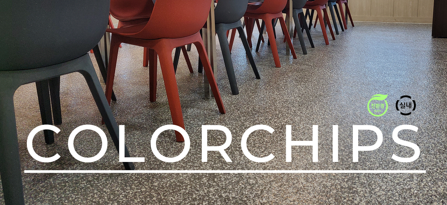 컬러칩스 바닥도장공법은 에폭시 수지와 컬러칩을 혼합하여 시공한 후 하이브리드 코팅 마감으로 고급 바닥 마감효과를 극대화 하는 시공공법